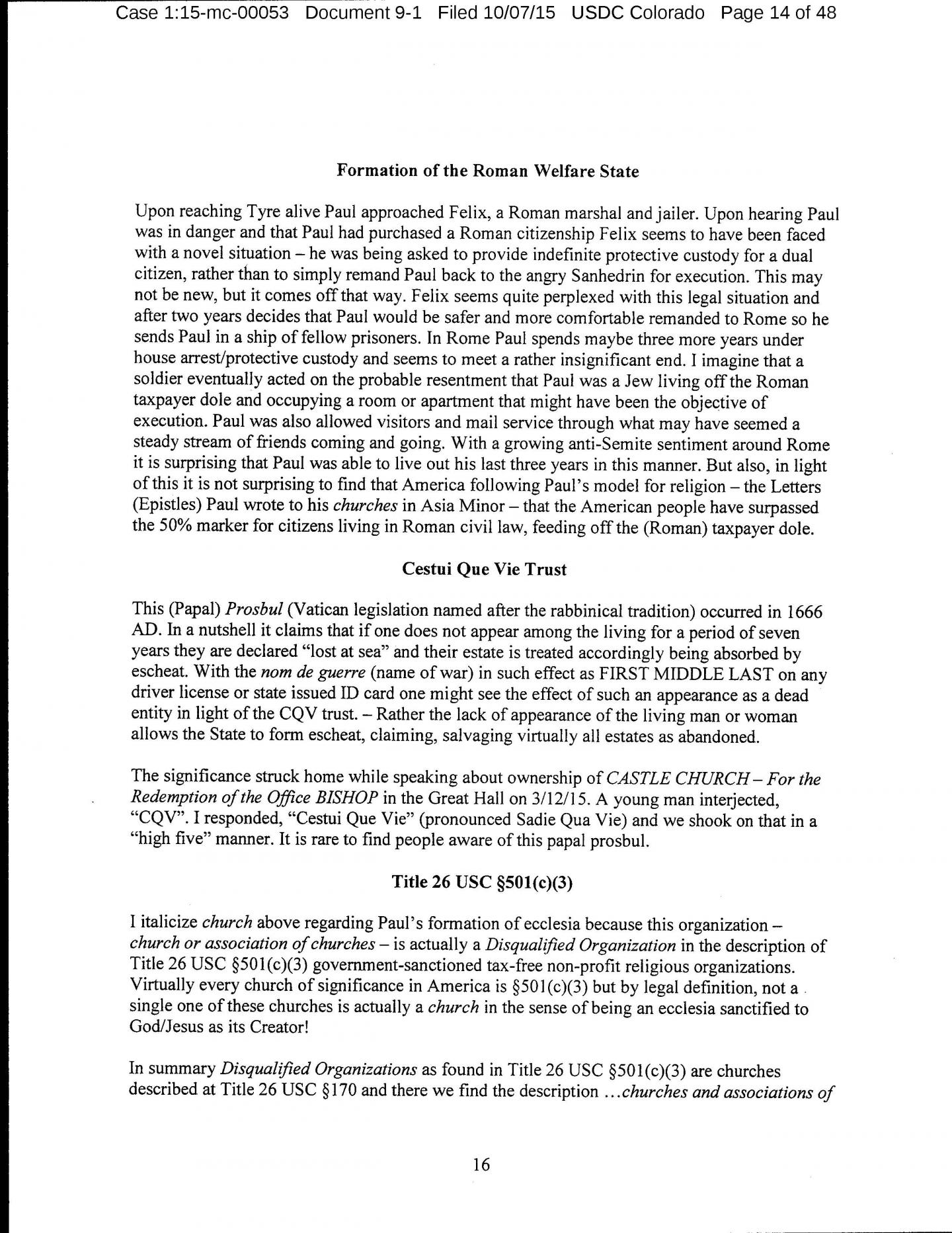 This should be examined in terms of the Warranty Deed - "good and valuable consideration". I have purchased Bishop Castle fair and square and part of the paying Jim is staying in honor of promises made at the time of the deal, in agreement. So this honor is not just to be providing the Gospel of Pragmatism as a foundation for CASTLE CHURCH TRUST as the true church - 508(c)(1)(A) Mandatory Exception, but we also engaged together on a mission statement about rectifying the judiciary.